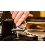 The cast iron tables are oversized, and the newly designed arbor lock lever is accessible from above the table top to eliminate the need for dual arbor wrenches. The quick-release riving knife design helps reduce the chance of kickback. The blade tilt scale features an integrated digital read out as well as adjustable angle indicators for repetitive bevel cuts. The newly designed integrated retractable hydraulic caster system mobilizes your table saw much higher than the previous model to assist when moving over thresholds. A wide stance, heavy-duty box trunnion and concave teeth on the trunnion gears promote easier raising and tilting of saw blade. Poly-V drive belt system results in quieter, more efficient power transfer from the motor to the arbor with virtually no vibration and less heat build-up. Improved built-in dust collection port with convenient access to the inside of the saw cabinet for simple clean-up. The saw has a proprietary safety switch with magnetic interlock and the stop button can be knee activated.