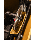 The cast iron tables are oversized, and the newly designed arbor lock lever is accessible from above the table top to eliminate the need for dual arbor wrenches. The quick-release riving knife design helps reduce the chance of kickback. The blade tilt scale features an integrated digital read out as well as adjustable angle indicators for repetitive bevel cuts. The newly designed integrated retractable hydraulic caster system mobilizes your table saw much higher than the previous model to assist when moving over thresholds. A wide stance, heavy-duty box trunnion and concave teeth on the trunnion gears promote easier raising and tilting of saw blade. Poly-V drive belt system results in quieter, more efficient power transfer from the motor to the arbor with virtually no vibration and less heat build-up. Improved built-in dust collection port with convenient access to the inside of the saw cabinet for simple clean-up. The saw has a proprietary safety switch with magnetic interlock and the stop button can be knee activated.