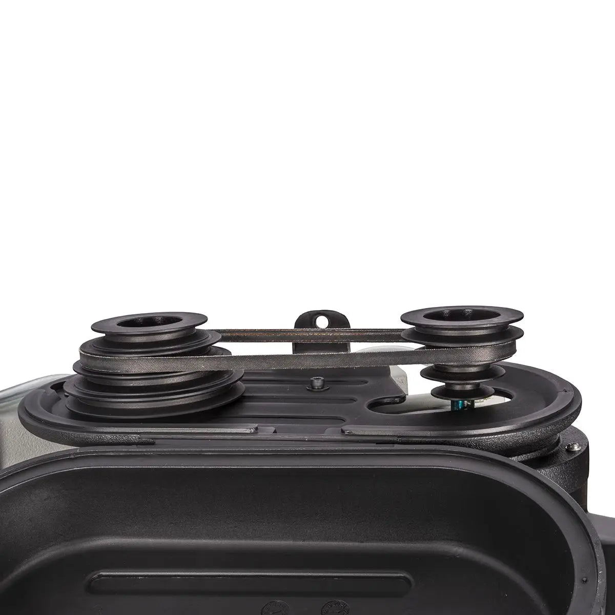 Step pulley drive train with 4 speed settings to cover all your sawing applications