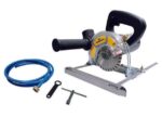 Weighing a mere 8.4 lbs, this portable tool has more than enough power to cut through most glass, ceramic or natural stone material. Included in this package is a blade guard assembly that allows for connection to a garden hose for wet cutting or connection to a vacuum for dry cutting.