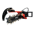 The Trencher features a 70/30 ratio of Aggressive Tungsten Carbide Cutter teeth and dirt teeth, making it effective in tough soil conditions and able to pull dirt out of the trench. The chain cuts up to 4′ depth. Standard crumber bar and tough discharge auger keep the trench clear.