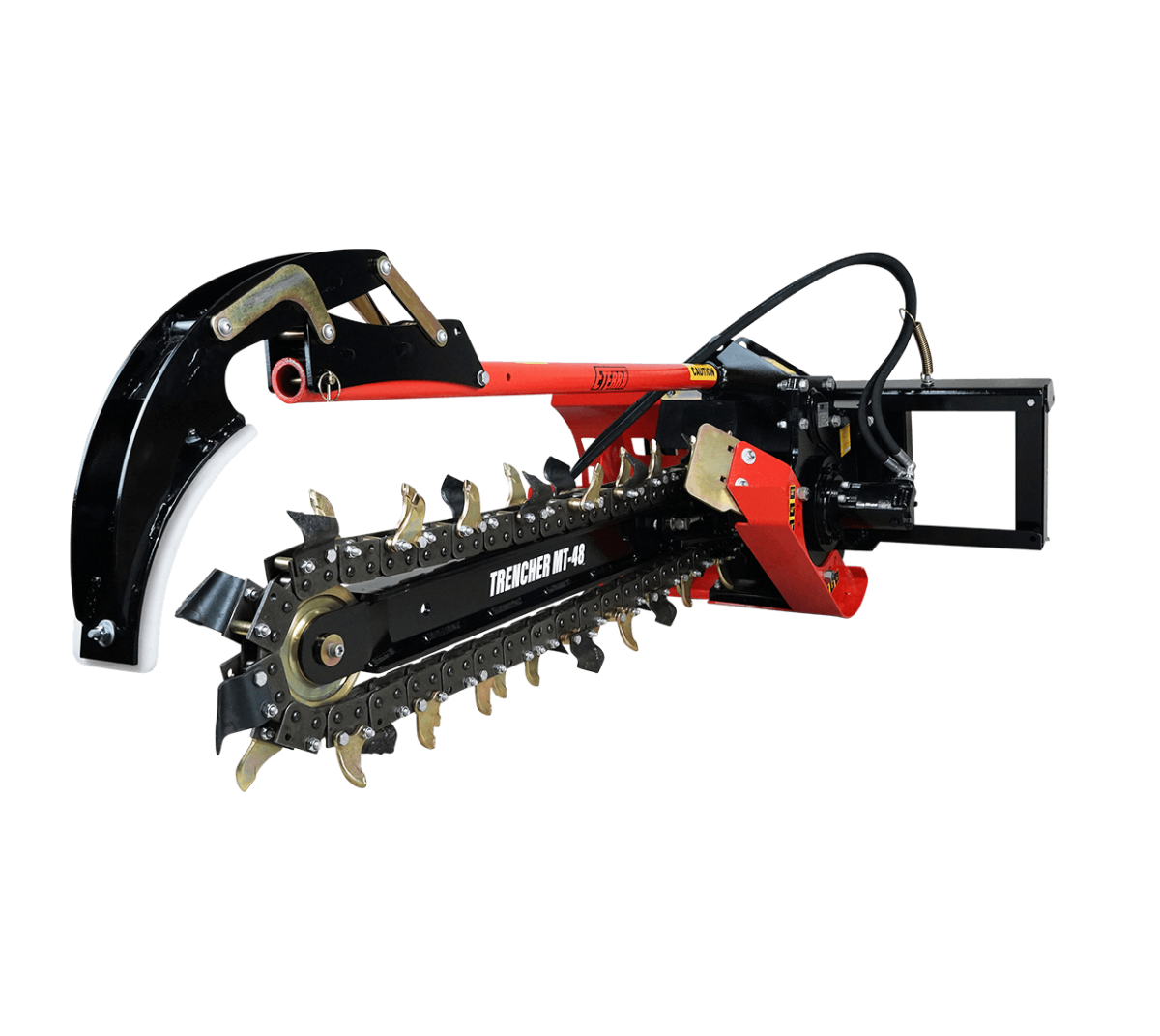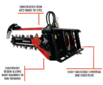 Eterra’s 4 Foot Trencher for Skid Steers is ideal for constructing long industrial or personal property trenches with ease. This trencher has set the standard today for reliability and effectiveness. Driven by the same proven gearbox as the Eterra Auger, it will cut through even the rockiest soil conditions. Just watch out for water lines.